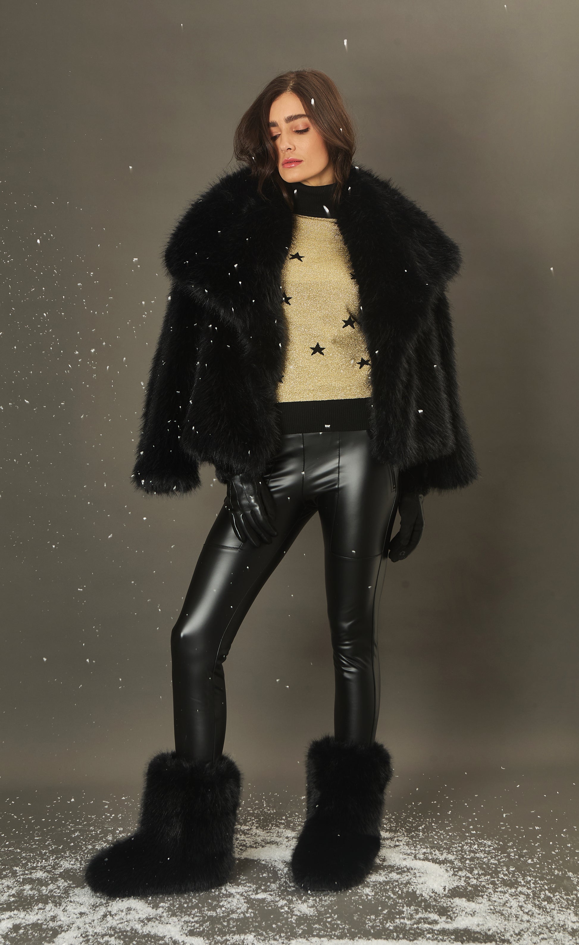 Casaco de pele fake, gola grande pelo alto imita vision, muito macio, modelagem mais oversize, com abotoamento
