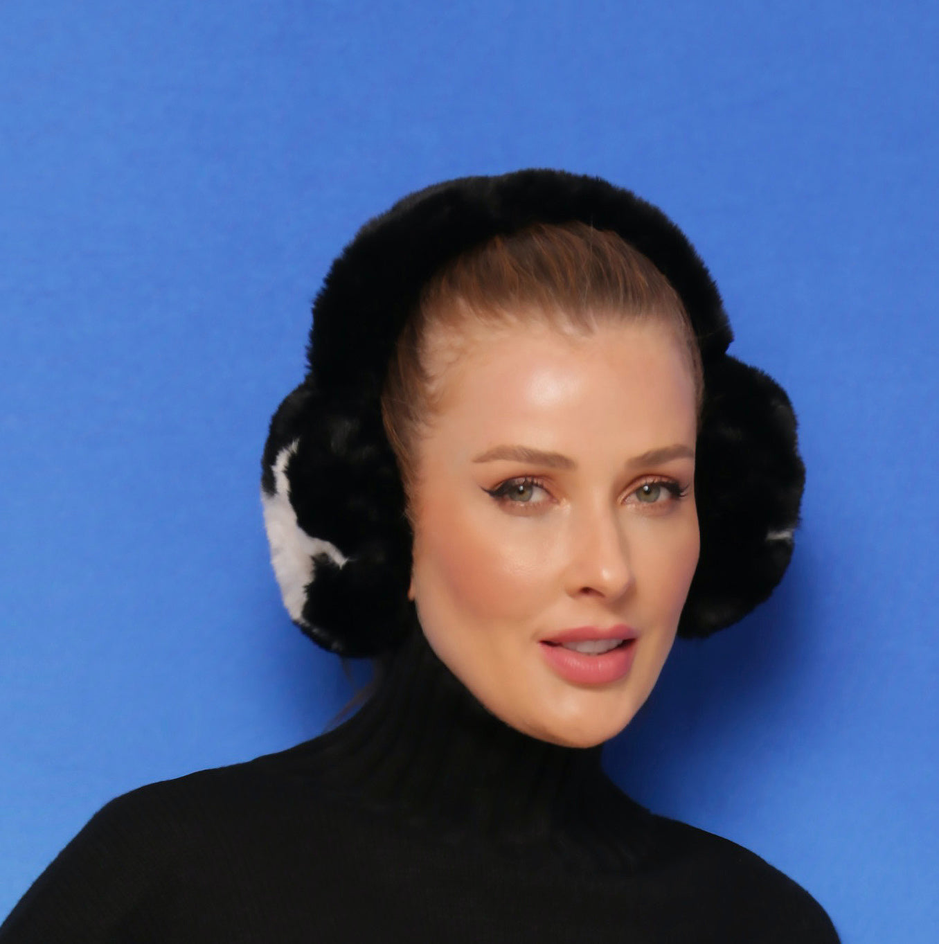 Earmuff protetor de orelhas, todo em pelúcia, com estrela em pelúcia off white, pele fake