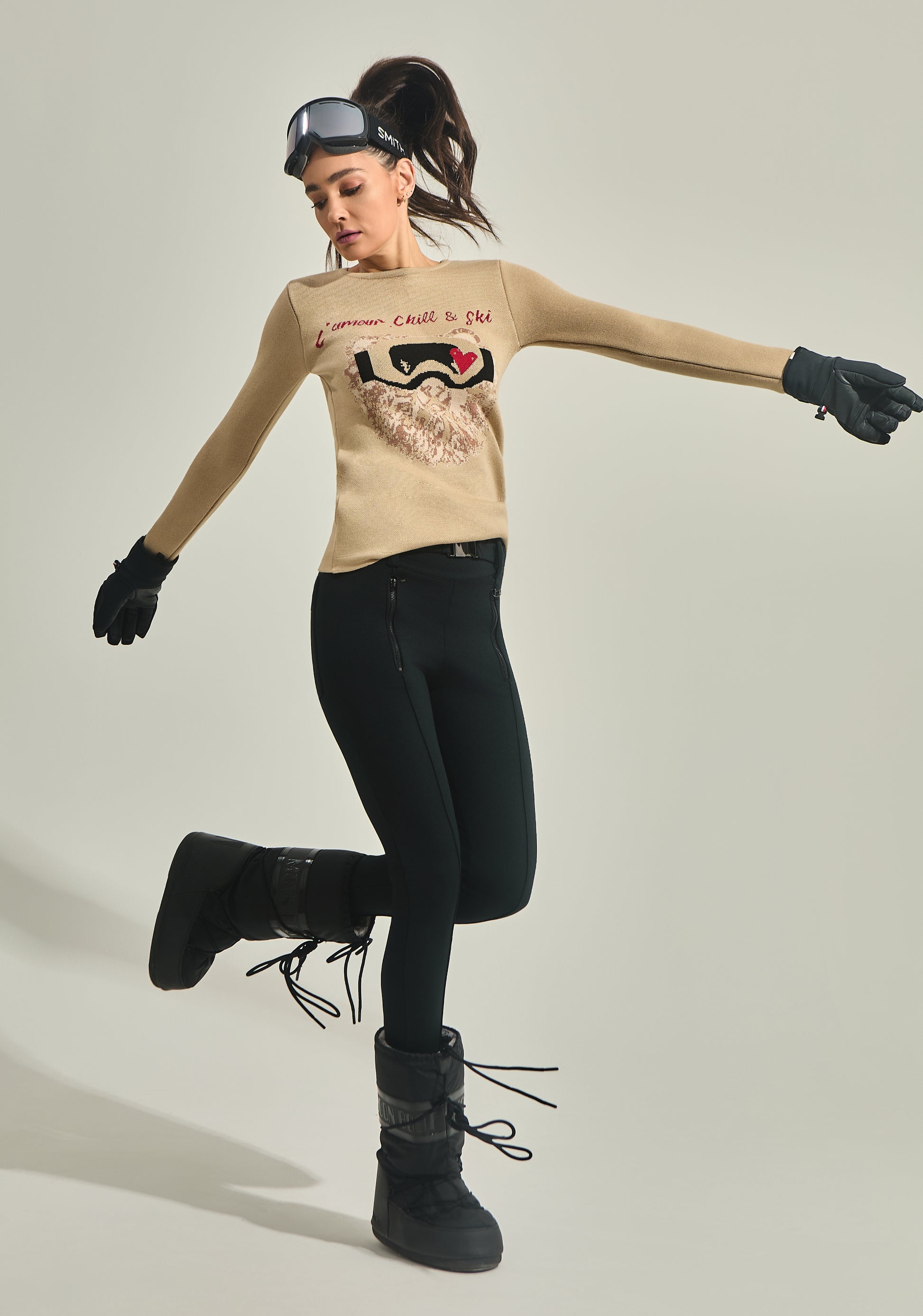 Tricot urso em jacquard, malha grossa, modelagem seca próxima ao corpo com elastano